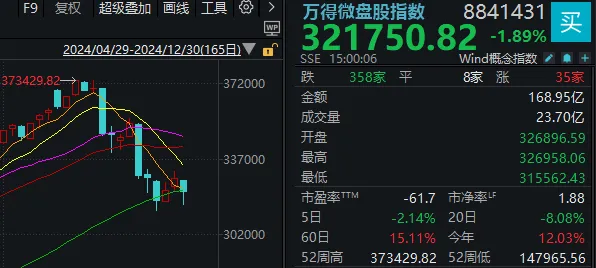 1)微盘股指数未录得上周一(12.23)那样的大阴线,日内已收下影线;